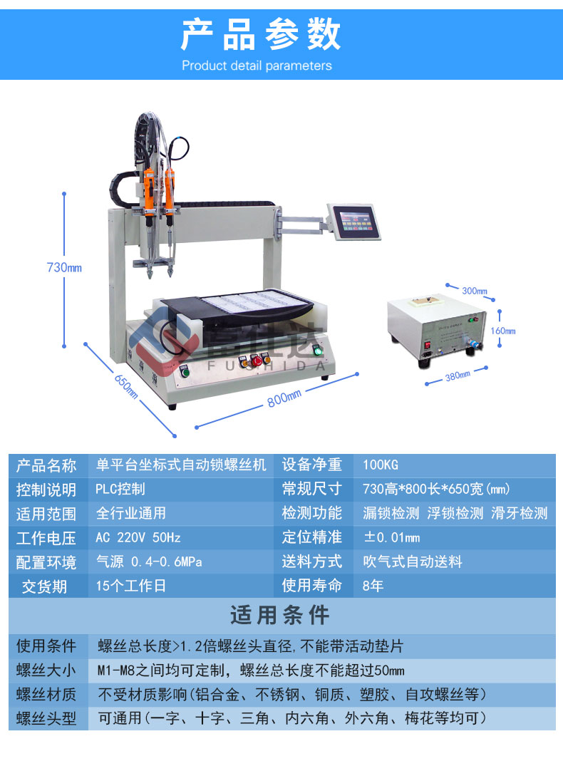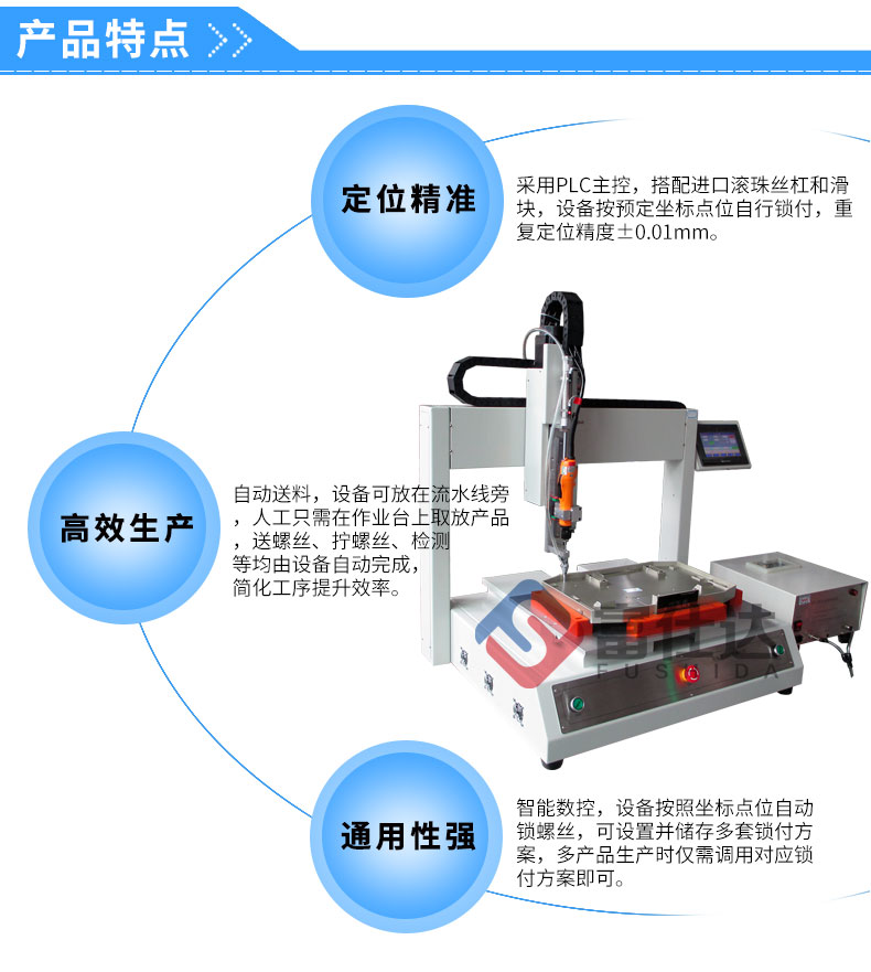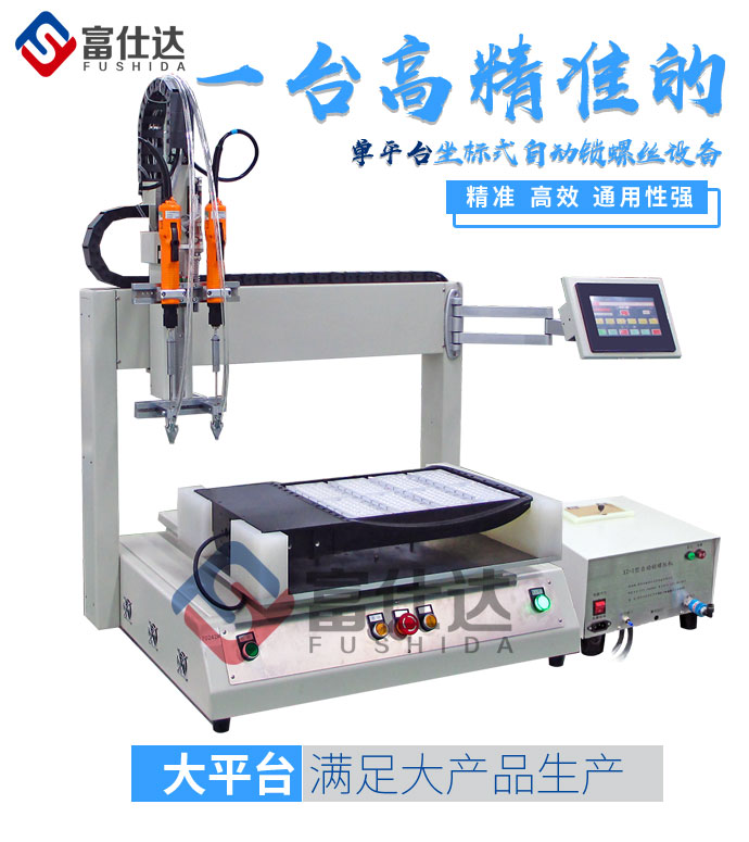 富仕達單平臺自動鎖螺絲機是指單平臺坐標式自動鎖螺絲機,通常用在面積較大產(chǎn)品,如:寫字板、大家電、天花吊頂、大型玩具及大型LED模組等。